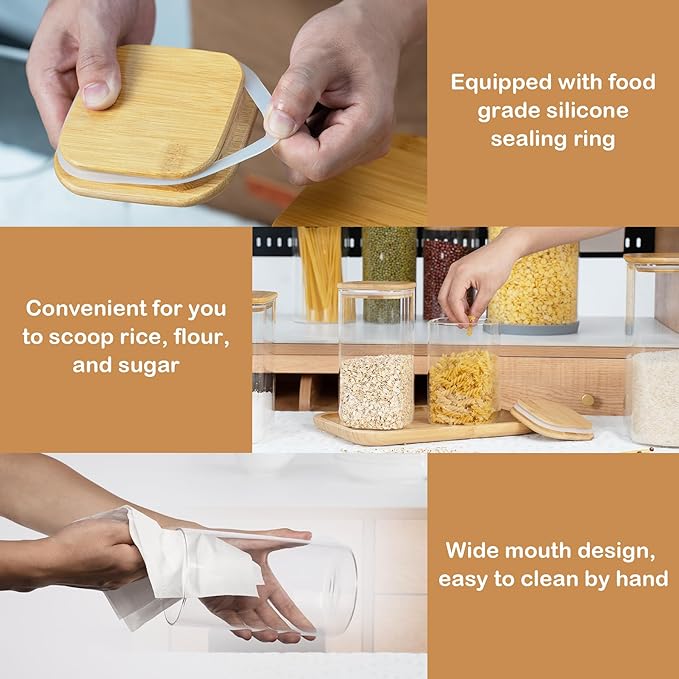 - [Multi-functional glass storage container]- This D2scrma airtight glass canisters with a natural bamboo lid and a good silicone seal ensures an airtight storage environment that keeps items fresh and extends their shelf life. Not only for kitchen storage, but even for pet food or other household items such as laundry beads, bathroom cotton balls, etc.