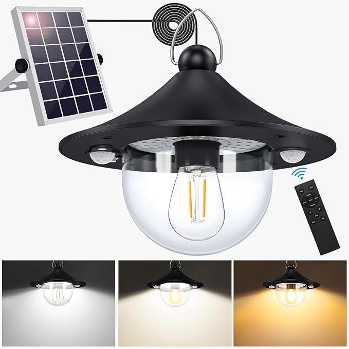 - 【IP65 Waterproof & Outdoor Indoor Use】This solar gazebo lights is made of ABS material with waterproof rating IP65, which ensures weather resistance against water, heat and frost. In addition, the solar panel and the light are designed separately, hang the solar gazebo light at the desired location and it is ready to run, perfect for shed, gazebo, garage, barn, chicken coop, storage room, campground, aisles and more.