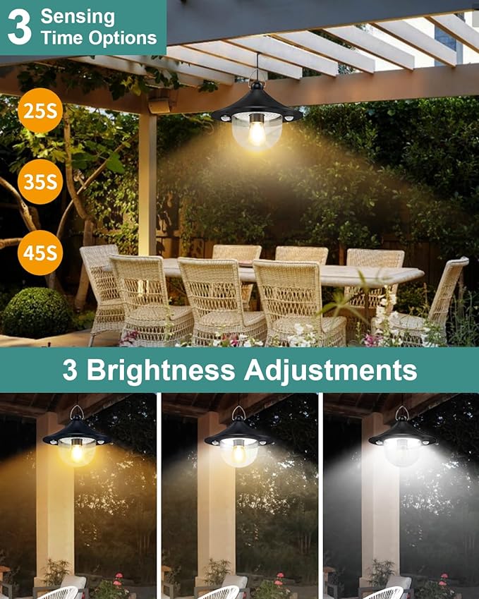 - 【3 Night Modes & 3 Sensor Time Options】This solar indoor lights comes with 3 night working modes. Mode 1: Stay dim, brighten for 15s when motion is detected. Mode 2: Stay off, hight light for 15s when motion is detected. Mode 3: Always on at night. This solar garage light also has 3 induction times (25s/35s/45s) to choose from to meet your different induction time needs.