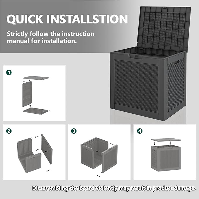 - WATERPROOF AND UV PROTECTION W - Crafted from durable resin material, this outdoor storage box is designed to withstand various weather conditions. It is waterproof, fade-resistant, and resistant to bending or breaking due to prolonged UV exposure, ensuring long-lasting use.