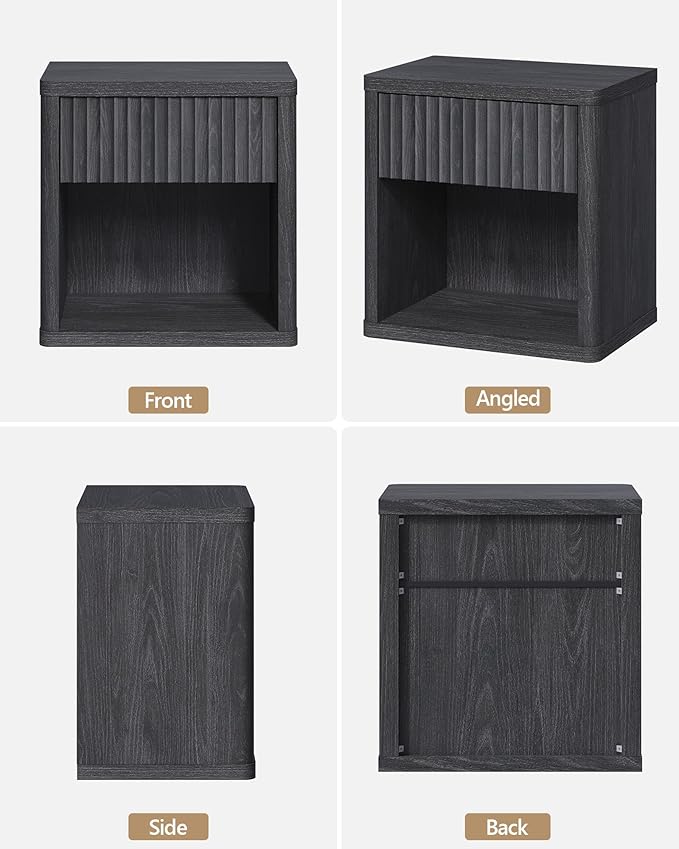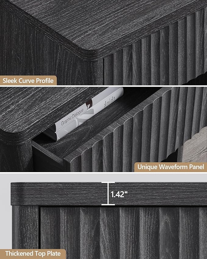 - 【Minimalist & Practical】- Our bed side table boasts a minimalist curve profile and a drawer with a unique waveform panel, perfectly balancing modern aesthetics with functional design. The chic appearance complements various bedroom styles, from contemporary to mid-century modern. The smooth lines and rounded corners make it safe for kids and families, creating a standout piece that elevates the ambiance of your room.