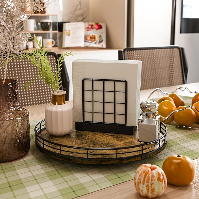 - Wide Application - The lazy susan organizer adopts handmade craftsmanship. Its MDF material is strong and long-lasting, not easy to wear and has no odor. The surface has exquisite texture, creating a unique rustic style