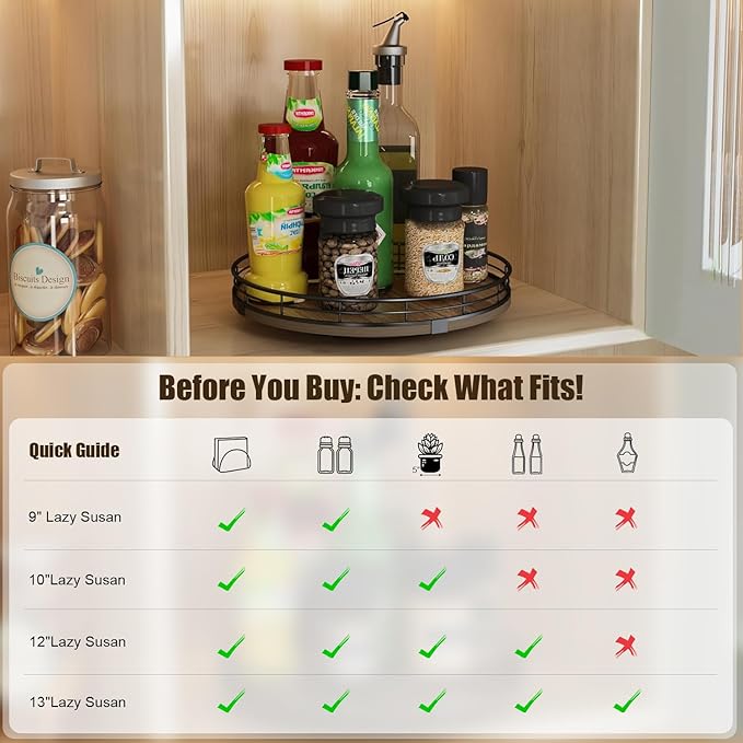 - Wide Application - A turntable for your many home needs. Not only as a bathroom vanity tray, place it in your cabinet for easy storage and access to food, condiments, cans, medicines, and more. Place next to the kitchen to display soap lotions. Also serves as a coffee table tray, perfect for displaying napkin holders, vases, candles, and keeping your life organized
