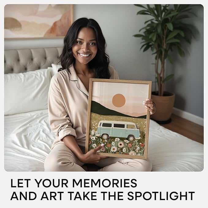 - LUXURY TEXTURE, NEVER LAMINATE Crafted from real oak with subtle grain and a matte finish, this frame delivers an upscale gallery look—not a mass-produced feel.