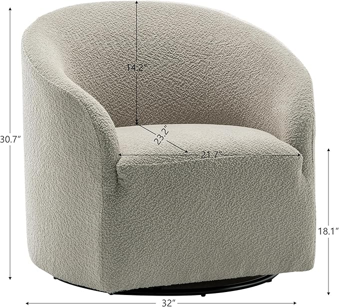 - 32" WIDE SWIVEL BARREL CHAIRS: 32 inches is the most suitable width for the swivel accent chairs to provide you with ample and comfortable seating space. The wider width allows you to sit comfortably without feeling cramped or restricted, giving you freedom of movement.