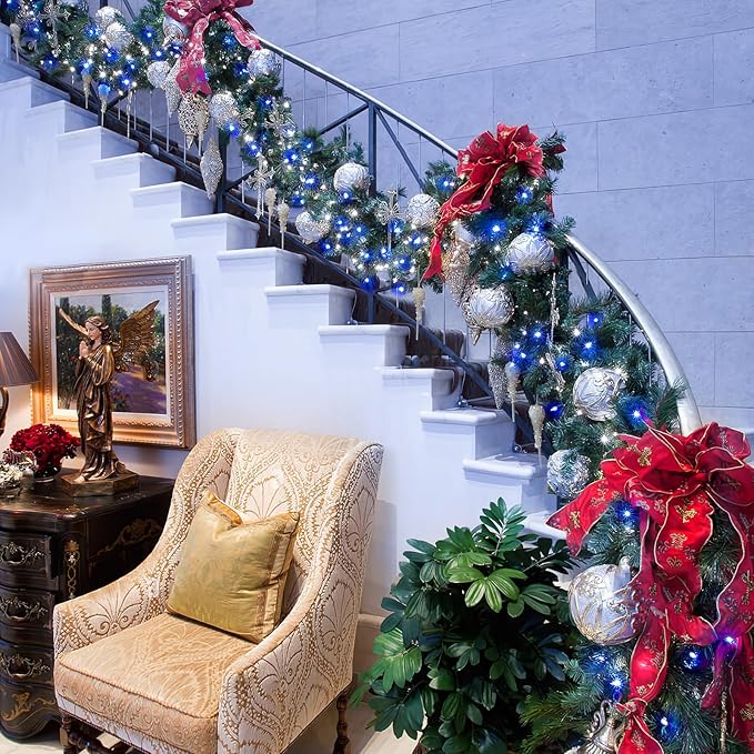 - Bright & Soft Christmas Lights- Blue and White Christmas lights are bright and not dazzling. In addition, the LED Christmas lights outdoors with plug greatly improve the stability of bulb brightness. Perfect for adding Christmas ambiance and wonderful for indoor & outdoor Christmas decorations.