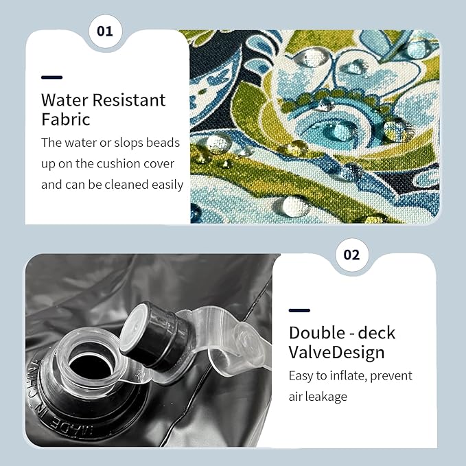 - 【EASY to INFLATE】 - Begin by placing the inflatable component into the cover prior to inflation. Utilize the foot pump to inflate it to approximately two-thirds of its size, then zip the cover halfway. Continue inflating until fully expanded and securely zip it closed. Ensure that the valve is properly sealed