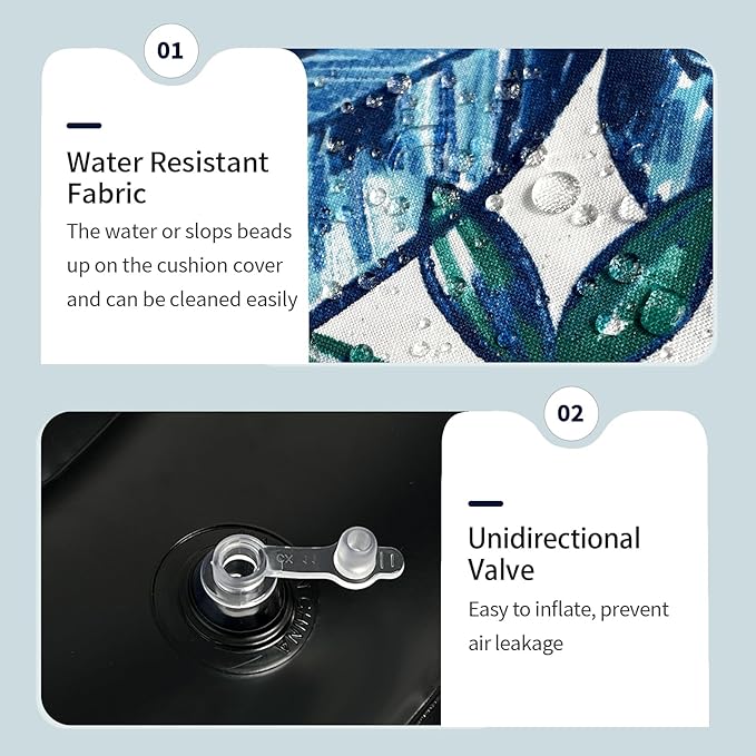 - 【EASY to INFLATE】 - Begin by placing the inflatable component into the cover prior to inflation. Utilize the foot pump to inflate it to approximately two-thirds of its size, then zip the cover halfway. Continue inflating until fully expanded and securely zip it closed. Ensure that the valve is properly sealed