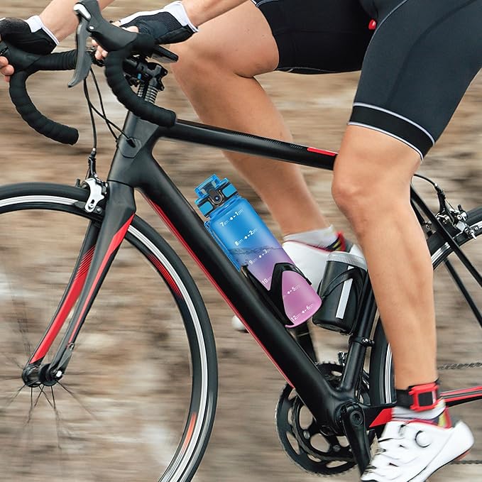 OLDLEY 32 oz Water Bottle, Motivational Water Bottle with Time Marker, Sports Water Bottle With Strap, Leakproof & BPA Free Large Water Bottles for School, Gym, Travel, Outdoor, Tritan,Blue&Purple
