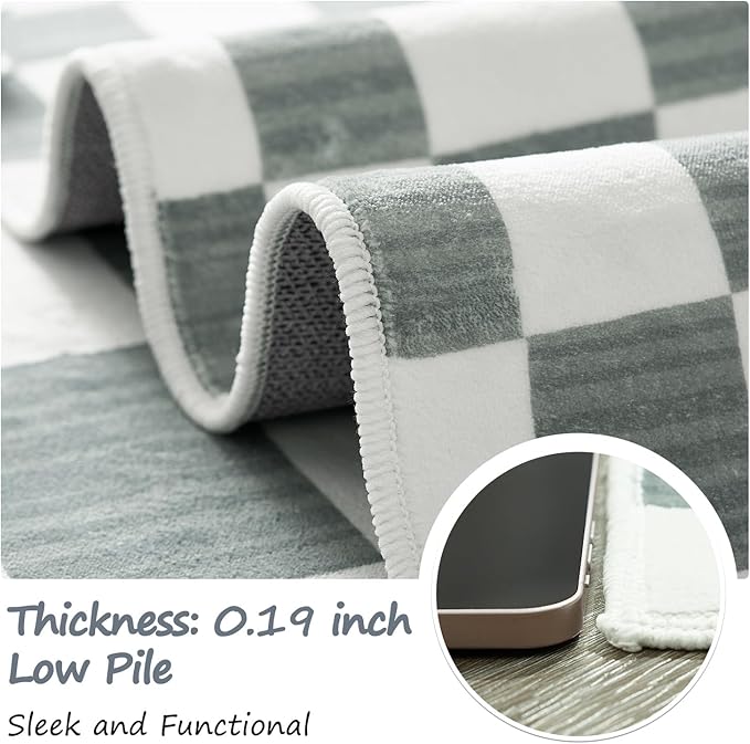 jinchan 5x7 Checkered Area Rugs for Kids Room - Machine Washable Soft Rug Modern Geometric Lattice Non-Slip Carpet for Nursery Playroom Classroom Living Room Bedroom Dining Room Home Office Grey