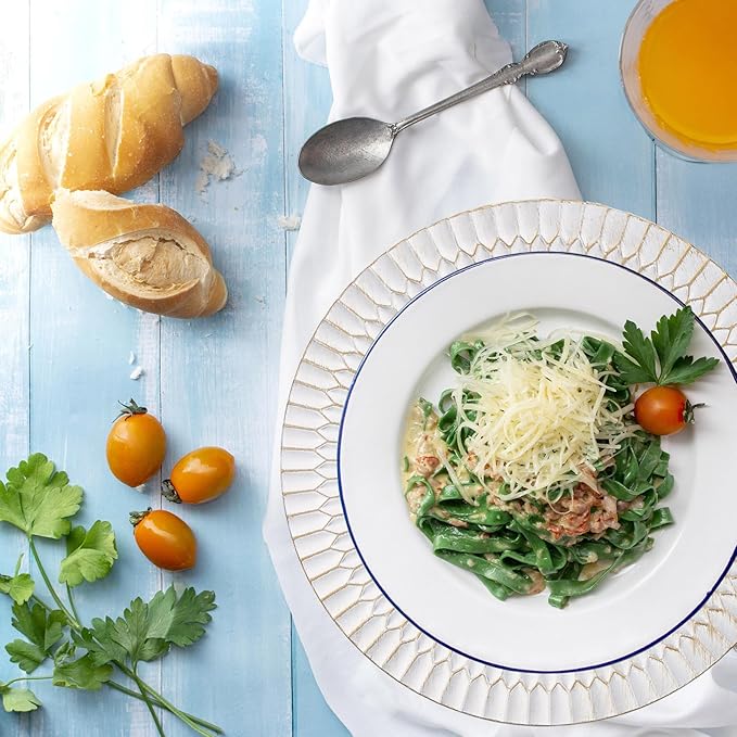 - Prevent Spills - Ideal for placing under salad plates, soup bowls and dinner plates to prevent spills and mealtime messes. Add glitz and glamour to your table with these charger plates for the ultimate fine dining experience.