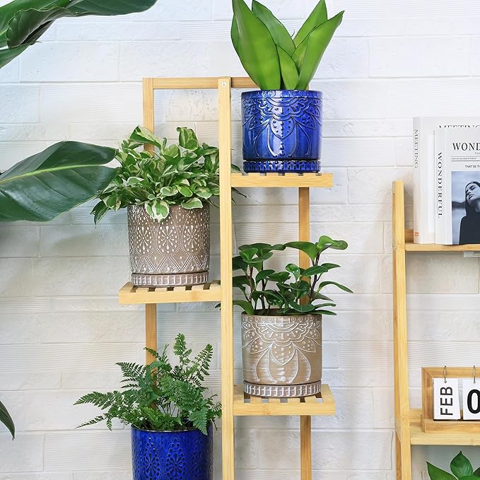 6 Inch Indoor Plant Pots with Drainage Holes and Saucers, Ceramic Planter for Plants, Flower Pot - Set of 2