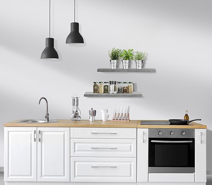 - Versatile & Functional Floating Wall Shelves: Install these floating shelves in the bedroom or bathroom to hold beauty/hair products - Place your wall shelf under a mirror in the entryway or exhibit family photos gallery style in a long hallway - Use as bathroom shelf, book shelf for wall, wall decor for bedroom, over the toilet shelf, kitchen floating shelves, floating nightstand, kitchen decor, living room wall decor, display shelf, and more