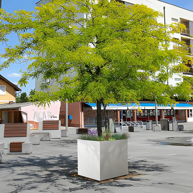 White Steel Planter Square Outdoor Planters Galvanized Steel Planter Box Indoor Metal Large Planters Cube Heavy Duty Flower Pot 26 Inch Modern Commercial Residential for Trees Patio Deck Yard Garden
