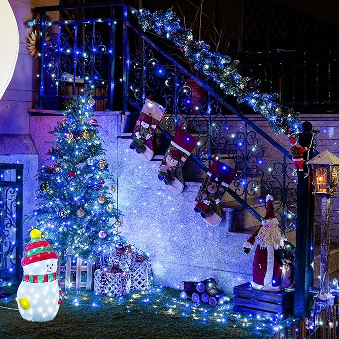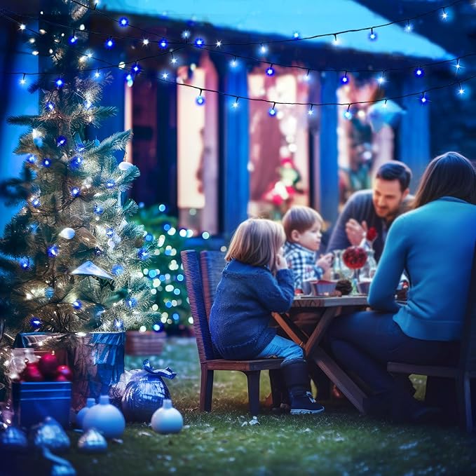 JMEXSUSS 2 Pack Blue & White Solar String Lights, Each 100 LED 33ft, Waterproof, 8 Modes for Outside Garden Patio Party Decoration