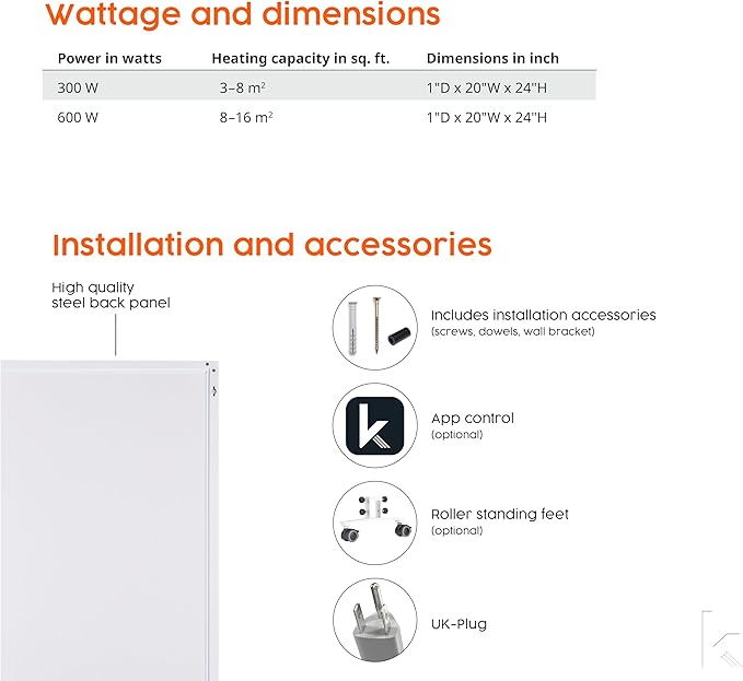 - ✔️ SCOPE OF DELIVERY - Incl. mounting material & 5.9ft cable - This product is only suitable for well-insulated rooms or for occasional use. For optimal use, we recommend the use of a thermostat
