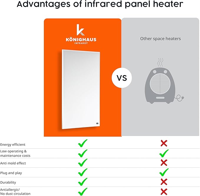 - ✔️ GUARANTEED LONG-LASTING - Könighaus infrared heaters are maintenance-free and come with a 5-year manufacturer's warranty and a 30-day satisfaction guarantee
