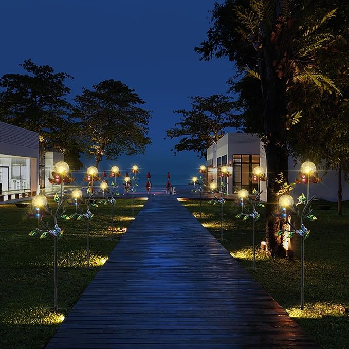 - Flower Decor and Wind Spinner: Inspired by the graceful flowers, these solar yard lights feature petals that can rotate 360° with the wind. They add a playful and enchanting touch to your garden.