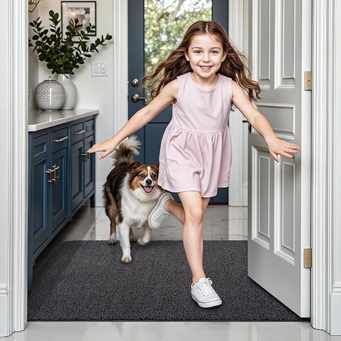LUMI Front Door Mat 24x36, Super Absorbent Washable Doormat, Non Slip Dirt Trapper Inside Floor Mats for Entrance, Entryway, Patio,Black Mixed Gray