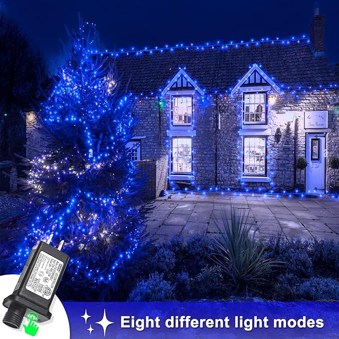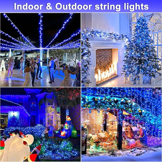 - Waterproof Fairy Lights: The blue Christmas lights design with IP44 outdoor waterproof, can withstand wind, snow, rain and extreme weather. String lights are equipped with a UL certified 29V low-voltage plug ensures the safety. It's safe for family with kids or pets!