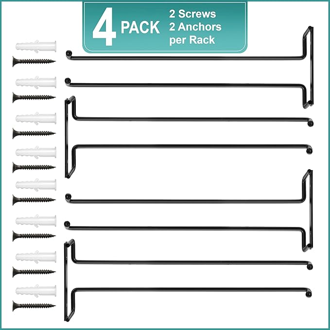 - Easy Installation: Mounting hardware included - Installation is simple with 2 screws and 2 anchors per rack - Fits under most standard-sized cabinets - Install multiple racks for additional storage
