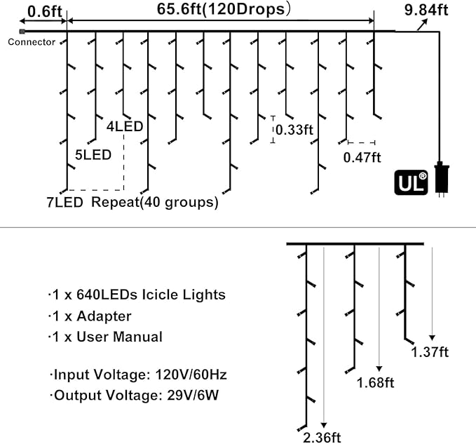 - Low Voltage & UL Certification: The output voltage of the Halloween lights for yard is 29V, the power of adapter is 6W with UL certified, energy saving and safe to use. The patio lights will not overheat even after working for a long time and safe to touch.