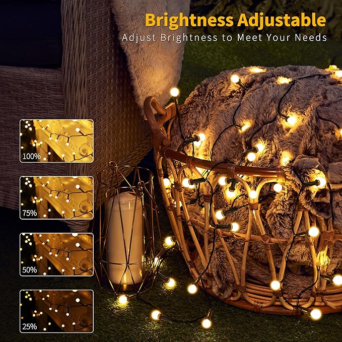 - High Bright Globe String Lights: Compared with normal lights, our mini globe string lights adopt high brightness led lamp beads with special designed globe shell, the mini bulbs create a 360º much more bright and uniform glowing, easy to create a captivating ambiance, transforming any space into a cozy and inviting environment. The soft, warm glow emitted by the globe-shaped bulbs adds a touch of elegance and charm to outdoor gatherings, whether it's a romantic dinner or a lively party.