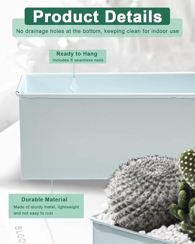 - 【Easy Mounting with Included Nails】Comes with 6 seamless nails for quick wall installation. Suitable for drywall, wooden fences, decks, railings, or mounted under windows for stylish vertical gardening.