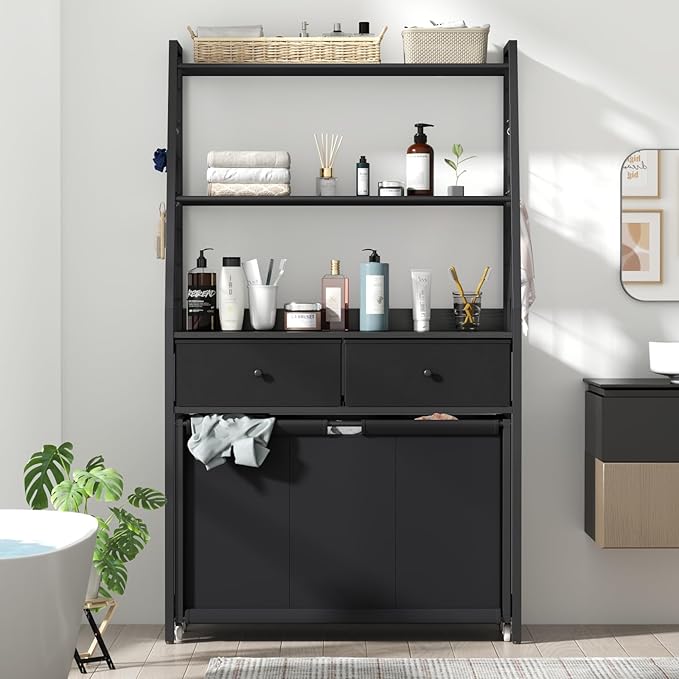 - [Pull-out Drawers to Laundry Organizer] The pull-out drawers of the rolling laundry organizer, akin to the saddlebags of a noble steed, offer ample storage for my personal items such as towels and undergarments, ensuring they are always within reach. With its two pull-out drawers, this organizer proves to be versatile, not limited to just laundry but also suitable for use in the bathroom or bedroom. It truly showcases its impressive storage capabilities!