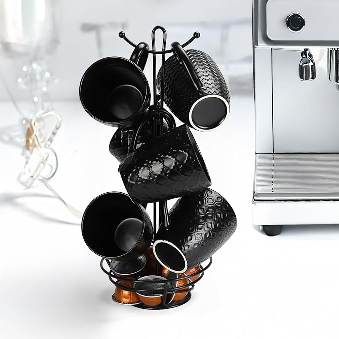 - Fashionable Appearance: Each coffee mug features a stylish matte black design and an unique embossed pattern on the outside, giving it an elegant and classic look. It is perfect for hot and cold beverages, coffee, milk, tea, etc.