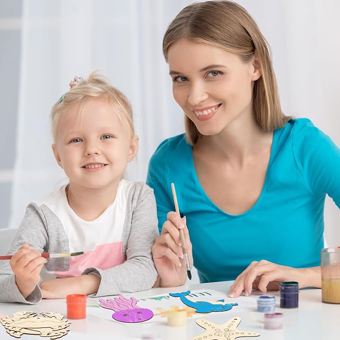 - Package includes:10 different shapes of blank wooden circles for free painting, each shape contains 8 pieces, (Whale Seahorse Octopus Starfish Dolphin Turtle Shark Crab Sea Wooden Shapes blank wooden circles) 80 pieces of cotton, and linen braided rope.