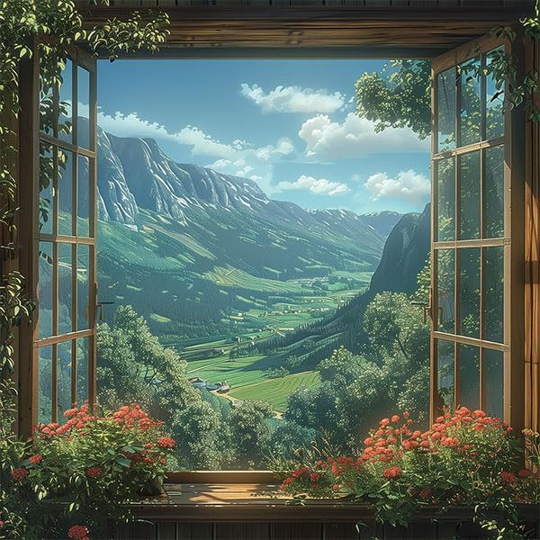 Mountain Blackout Curtains for Girls Boys Teens Home Decor, Spring Sky View Nature Forest Flower Grommet Thermal Insulated Drapes Darkening Window Curtain for Bedroom Living Room, 84 x 84 Inch