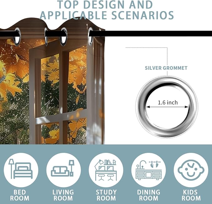 Landscape Blackout Curtains for Girls Boys Teens Home Decor, Nature 3D Autumn Fall Forest Maples Grommet Thermal Insulated Drapes Darkening Window Curtain for Bedroom Living Room, 42 x 63 Inch