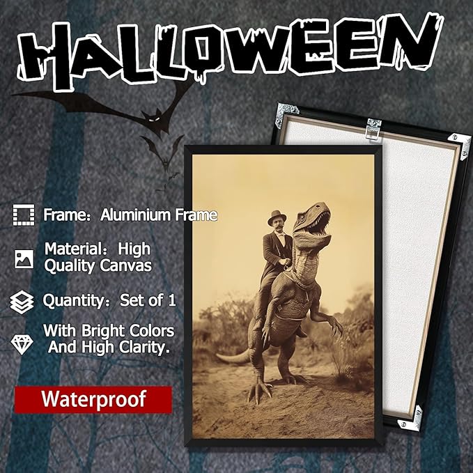 - Gothic Home Decor,A perfect Christmas presents,All Saints' Day and New Year gifts for your relatives,son and Male friend. High definition canvas poster depicting dinosaurs and men. It Gives a strong visual impact.