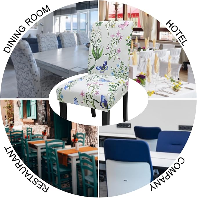 JQinHome Pattern Chair Covers for Dining Room Set of 6, High Stretch Removable Washable Parsons Chair Slipcover for Home Party Hotel Wedding Ceremony (Flowering Butterflies,6PCS)