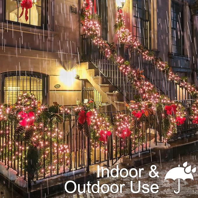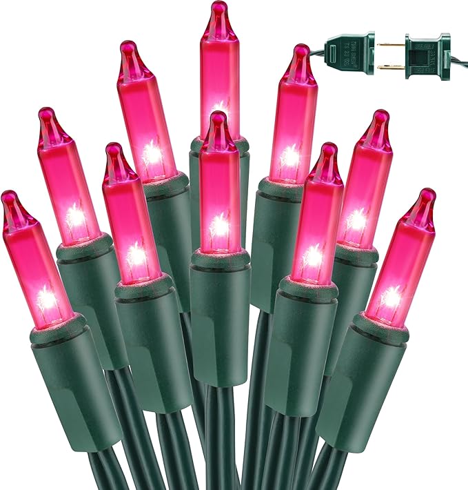 - 300 Counts Pink Mini Lights: Old-fashion pink incandescent Christmas light set, creates a festive atmosphere, celebrates Christmas, New Year, Birthdays and special holidays, cast a magical look to your house and garden, and impress your family friends, and relatives with this easy to set up!
