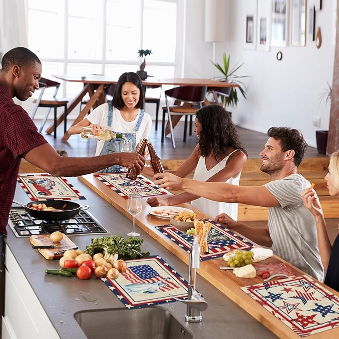 - Easy cleaning: Vintage fourth of july placemats set of 6 decorations sets are designed for easy cleaning to save you from the hassle of washing the patriotic placemat covered with grease. You only need to wipe them easily with a damp cloth, making you spend more time enjoying a happy time with your family and friends.