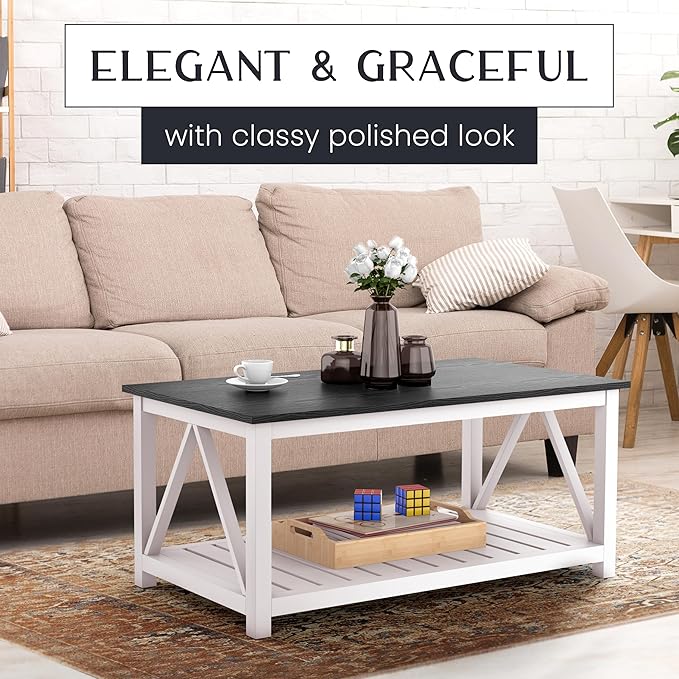 - ✅【 Stylish Design 】This modern farmhouse coffee table is a timeless design that will fit perfectly into any living room or bedroom setting. It brings a warm, welcoming vibe to any living space, which can make your space feel more like a home.