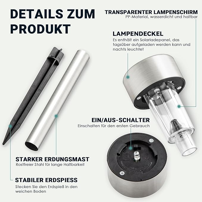 - 【EASY INSTALLATION】: Our solar lights outdoor waterproof are incredibly easy to install. Simply connect the pole and push the stake into the ground. Solar Patio lights will automatically turn on at dusk and turn off at dawn, making it hassle-free for you
