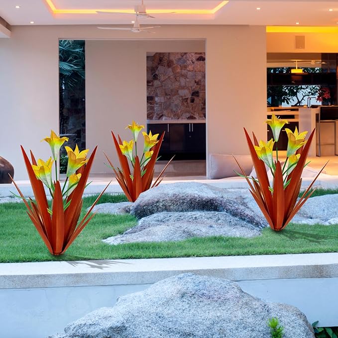 Homight Metal Agave Plant Outdoor Decoration Outdoor Garden Decoration Lily Mexican Yard Art Plant Garden Agave Lily Decorative Garden Gift… (2 Big Yellow Lilies), HM-390-345