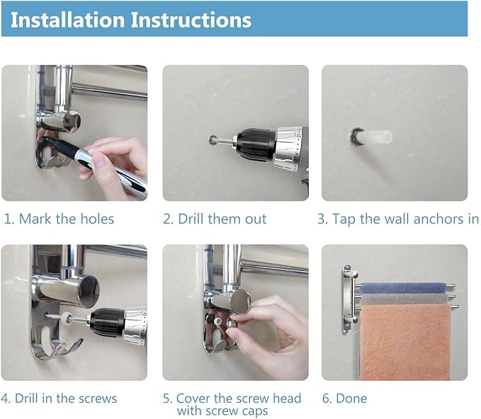 - Rotates 180°: Multiple swivel arms allows you to spread out the desired arms for easy drying, and swivel them back against the wall to save space. The arms of this item are relatively short. Please measure in advance of purchase.