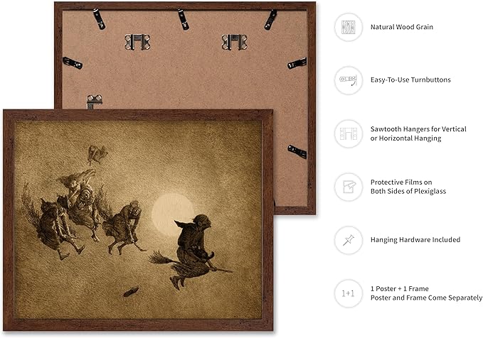 Poster Master Vintage William Holbrook Beard Poster - Retro Occult Print - Gift for Gothic, Horror Fan - The Witches Ride, Pagan, Goth, Magic - Wall Decor for Bedroom, Dorm, 16x20 Brown Framed