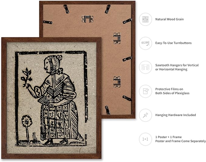 Poster Master Vintage Woodcut Poster - Retro Medieval Print - Gift for Gothic, Horror Fan - Witch Holding a Plant, Magic, Spell, Herbalist - Wall Decor for Bedroom, Dorm, 11x14 Brown Framed