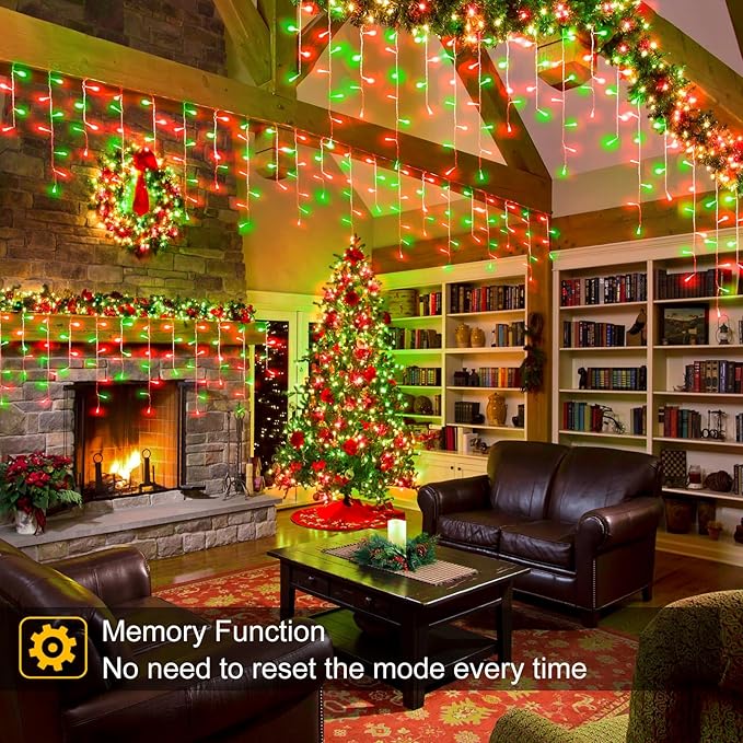 - 【Waterproof Christmas icicle lights】The xmas lights outdoor is perfect for outdoor using, including heavy rain and snow. Sealed LED beads, thick gauge wire and coating all are IP44 waterproof, they make the Christmas lights for outside durable and worked great through the season. But please kindly note that the plug is not waterproof, please do some protection or keep them away from water.