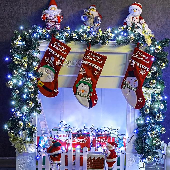 - 8 Lighting Modes: This blue and white Christmas lights has 8 lighting modes to fit different occasion and mood needs, including combination, in waves, sequential, slo-glo, chasing/flash, slow fade, twinkle/flash, steady on, adjust the lighting modes by pressing the round button on the adapter. The perfect ambient light for family gatherings and holiday celebrations.