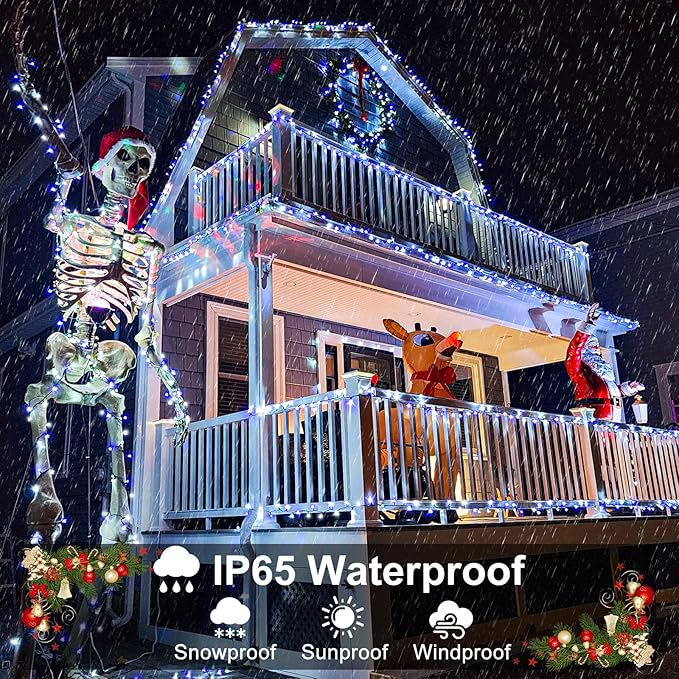 - Ideal for Christmas Decorations: The IP65 waterproof Christmas lights outdoor can withstand all kinds of weather, ideal for year-round use. These twinkle lights for Christmas tree are fabulous decorations for your garden, bistro, balcony, terrace, pergola, gazebo, tent, pool umbrella, cafe, bedroom or other occasions. But please note that plug not waterproof.