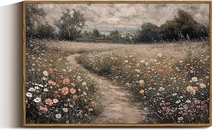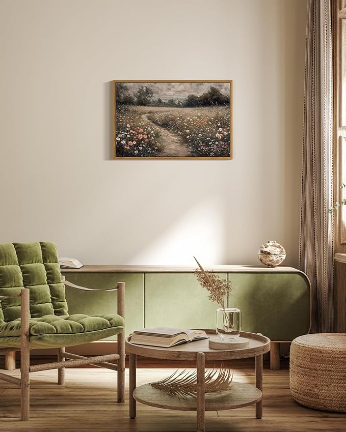 VIYYIEA Framed Canvas Wall Art Home Decor Vintage Landscape Nature Country Wildflower Paintings Farmhouse Pictures Floral Artwork Rustic Flower Prints Cottagecore Living Room Bedroom Bathroom 16x24in