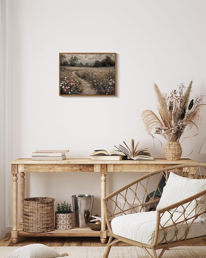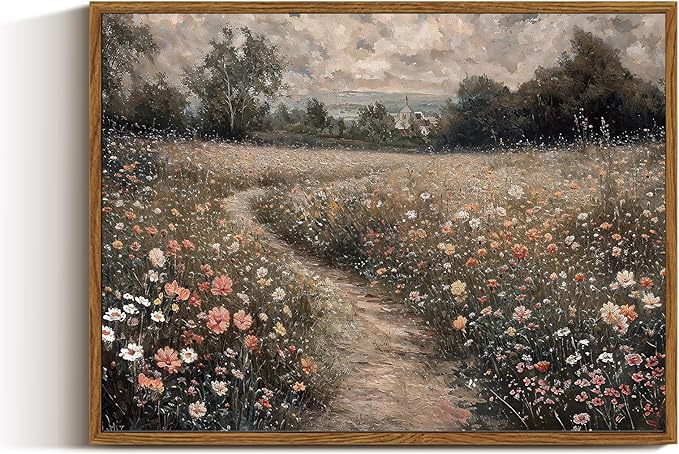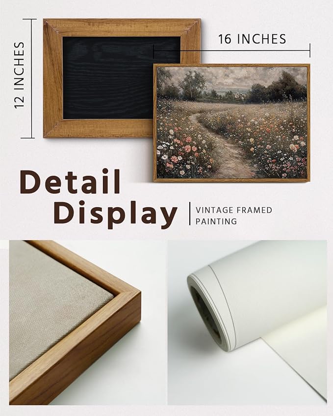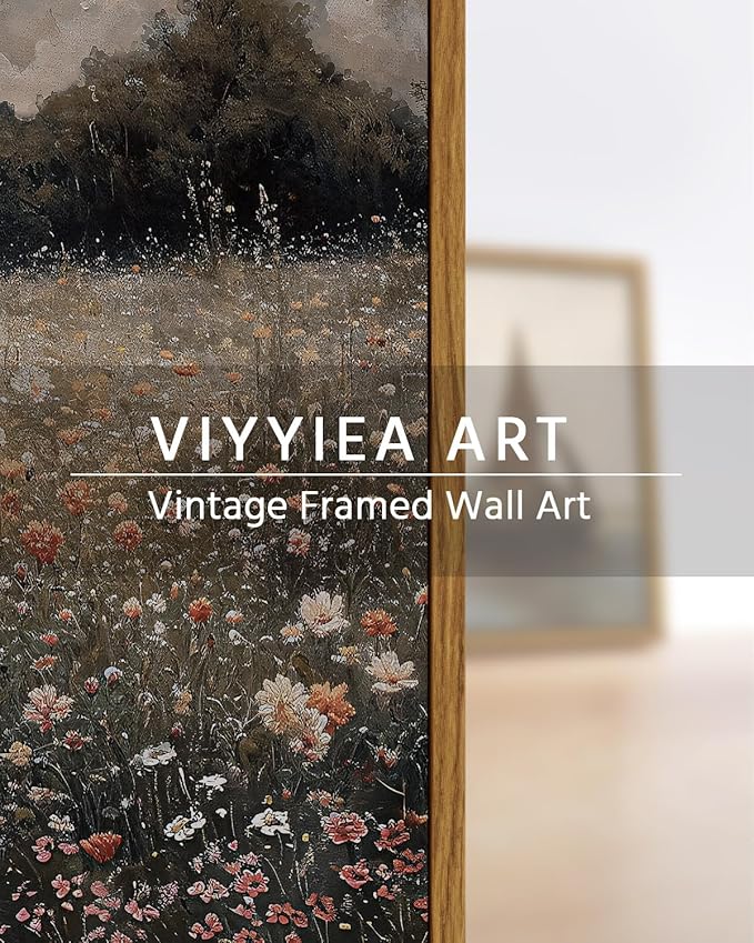 VIYYIEA Framed Canvas Wall Art Home Decor Vintage Landscape Nature Country Wildflower Paintings Farmhouse Pictures Floral Artwork Rustic Flower Prints Cottagecore Living Room Bedroom Bathroom 12x16in