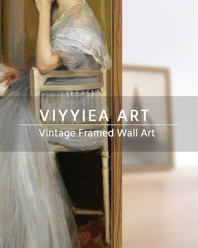VIYYIEA Framed Canvas Wall Art Home Decor Portrait Art for Living Room Women Reading Pictures Bedroom Bathroom Wall Decor Mid Century Lady Oil Painting Room Decor Vintage Prints Aesthetic 12x16in