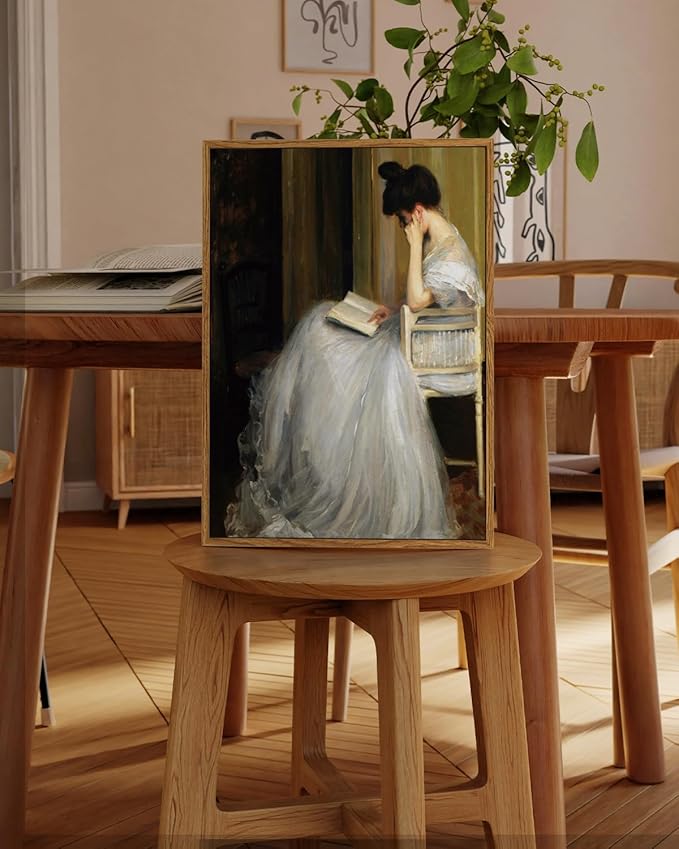 - VINTAGE OIL PAINTING: The portrait wall art is a beautifully executed painting that combines realism with subtle impressionistic touches to create a serene and intimate scene. The retro frame enhances the artwork's elegance, making it a striking and valued piece. The wall decor painting's focus on a solitary woman reading in a quiet, warmly lit space evokes themes of contemplation, solitude, and intellectual engagement, making it a timeless and evocative work of art.